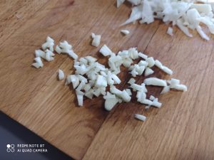 3.Tipula eta baratxuria zuritu eta brunoisen zaitu, urdaiazpikoa laukietan zatitu.