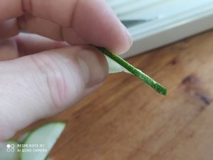 2.Kuiatxoa garbitu eta laurdenetan zatitu. Ondoren mandolina batekin zatitu (ez baduzu labanarekin ahal duzun finena moztu).
