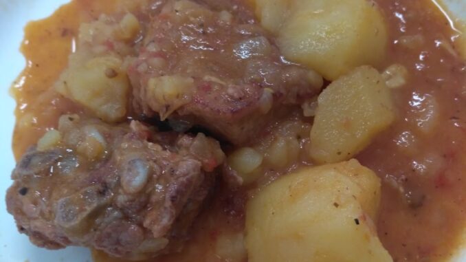 5.Multzoa 20 minutuz egosi patata egina egon arte. Platerean zerbitzatu.